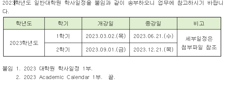 2023학년도 대학원 학사일정(Academic Calendar) 안내