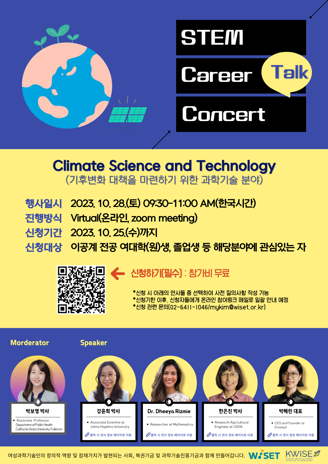 ◆ 주요 연사 : 강윤희 박사(존스홉킨스), Dheeya Rizmie 박사(매스매티카), 한은진 박사(미국농무부), 박혜린 대표(Enomad), 박보영 박사(캘리포니아주립대학교,풀러턴)