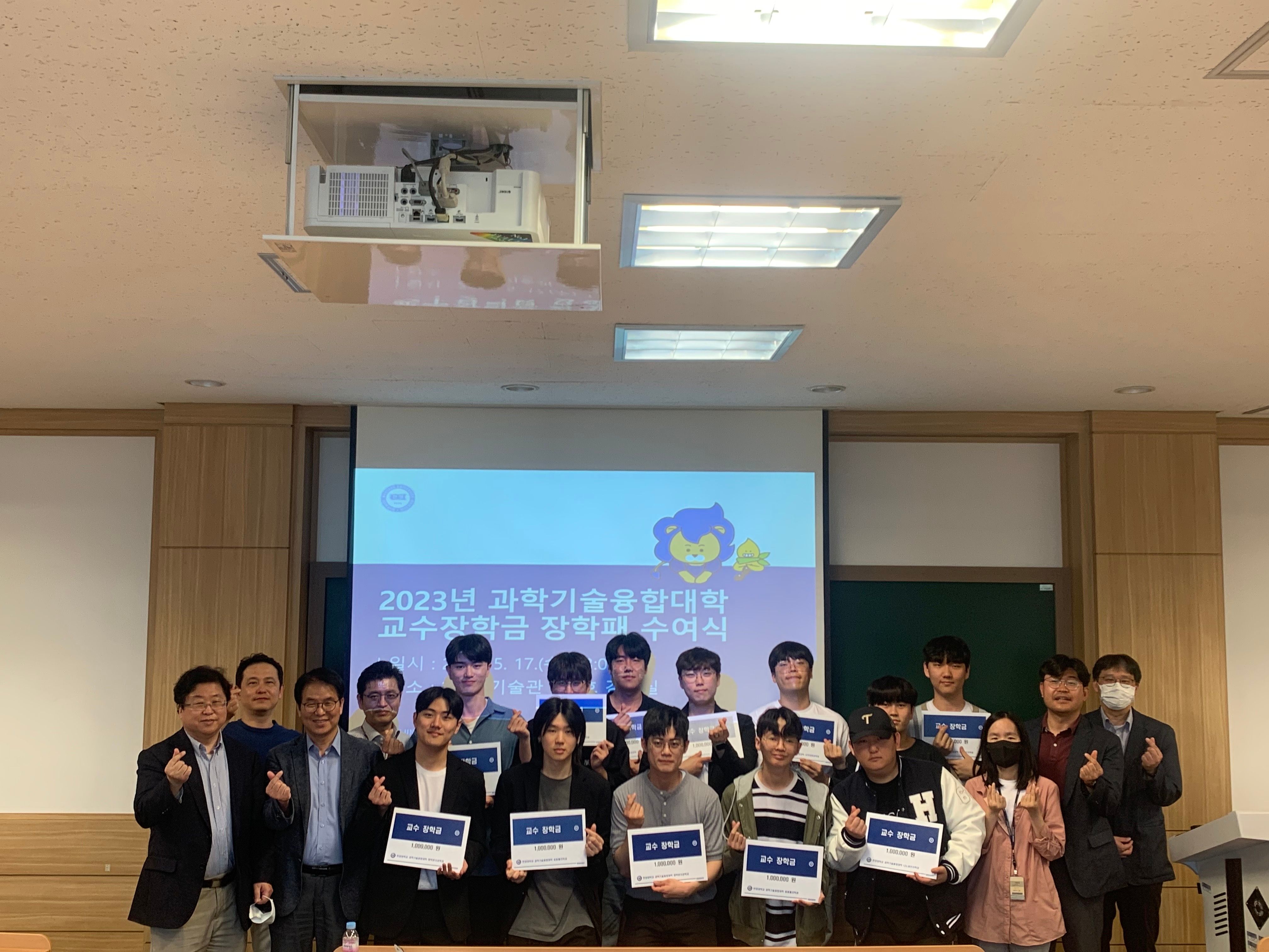 과학기술융합대학은 2023년 스승의 날을 맞이해, 6개 학과에서 선발한 우수학생 12명에게 총 1,200만원의 교수장학금 전달식을 개최했다. 본 행사는 2023년 5월 17일, 수요일에 제2과학기술관 110호 강의실에서 열렸다.