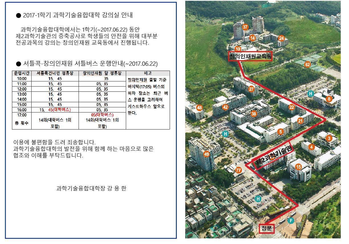 2017-1 학기 과학기술융합대학 전공과목(일부) 강의실 변경 안내
