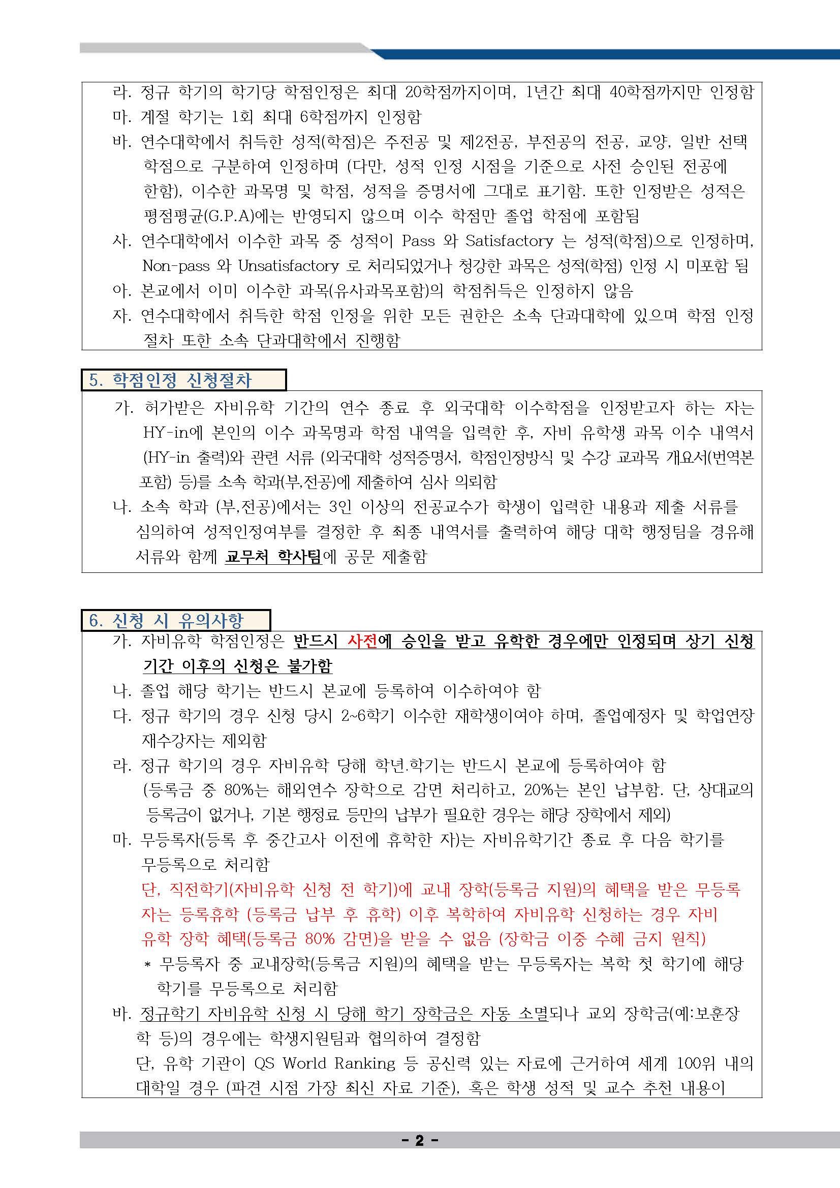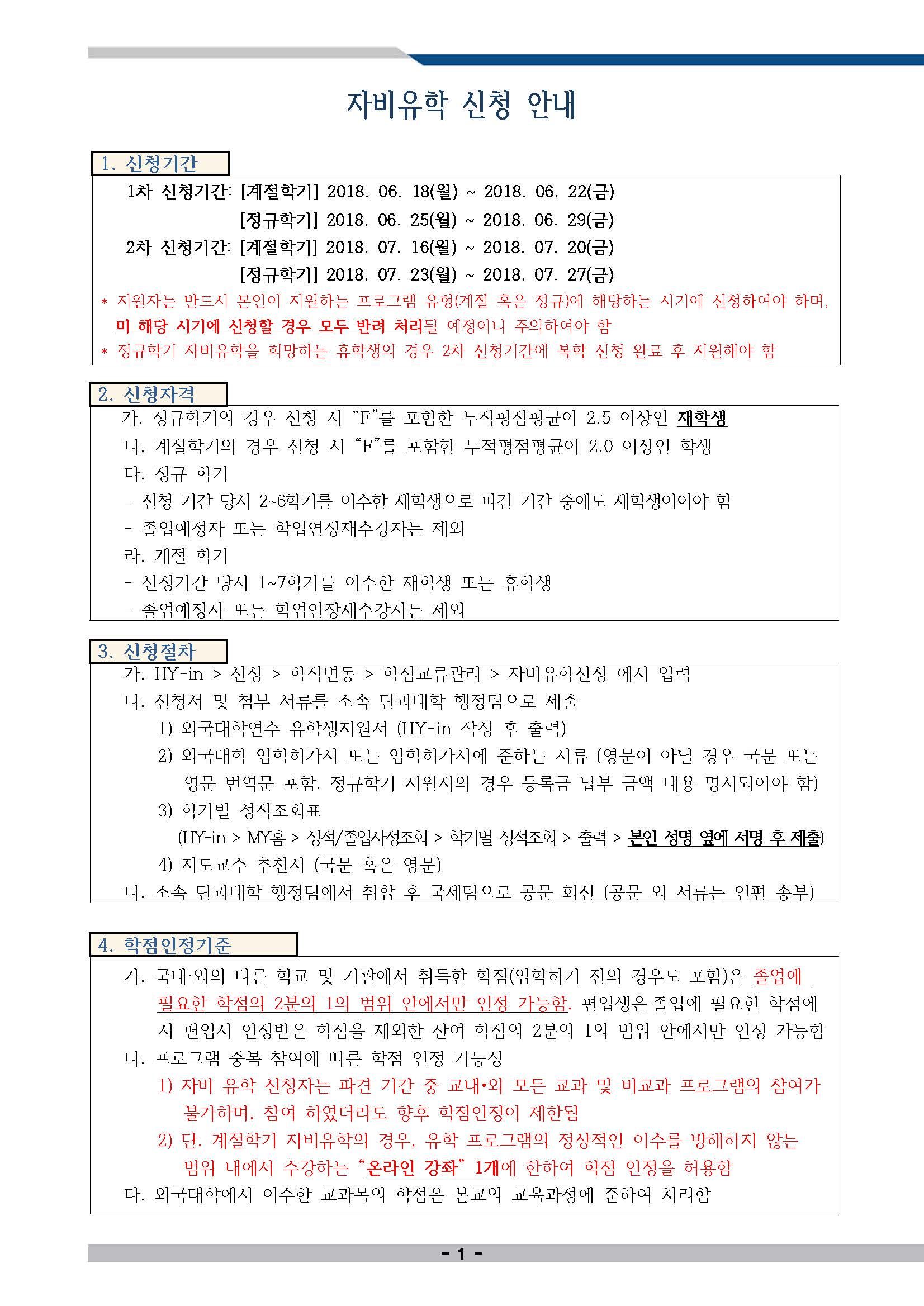 2018년 여름학기 및 2018년 2학기 자비유학 신청 안내