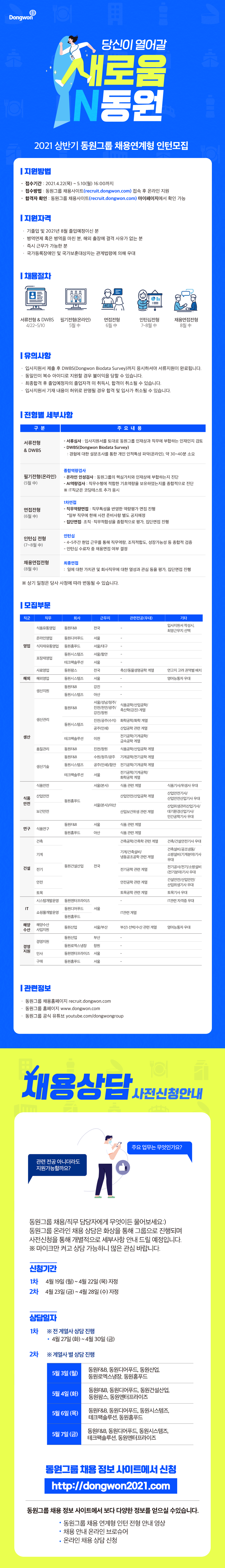 [동원그룹] 2021 상반기 채용연계형 인턴모집 (~5/10)