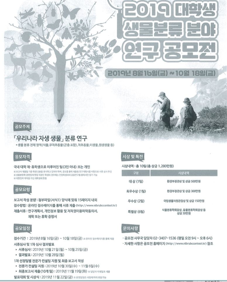 2019 대학생 생물분류 분야 연구 공모전 안내
