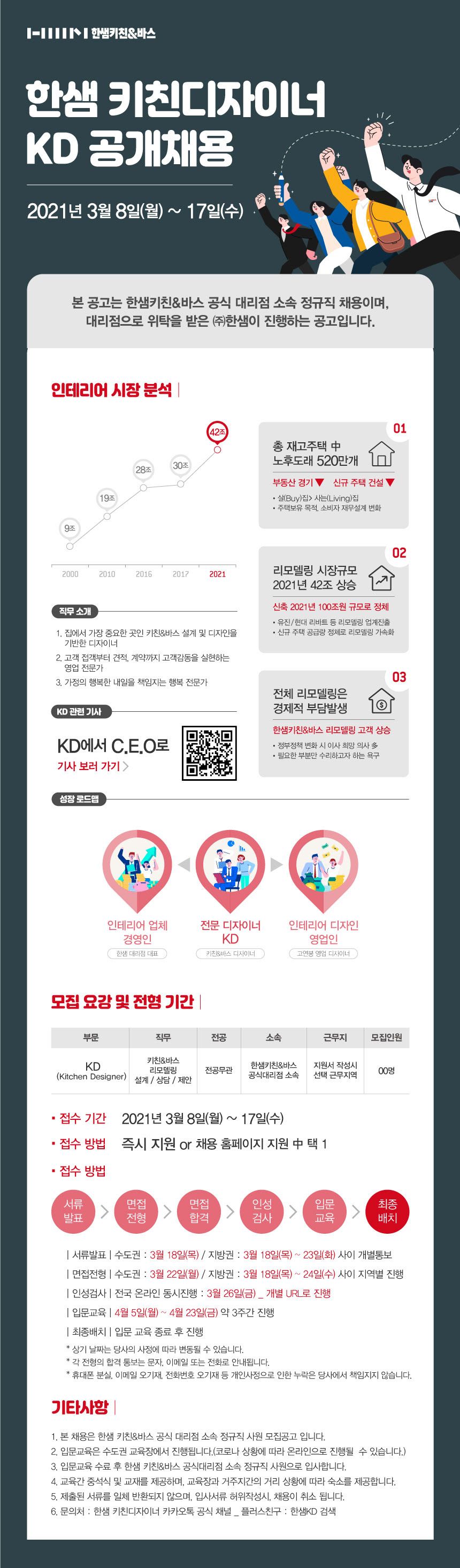(주)한샘 키친&바스영업전문직(KD) 대규모 공개채용 (21년 3월) (~3/17까지 접수)