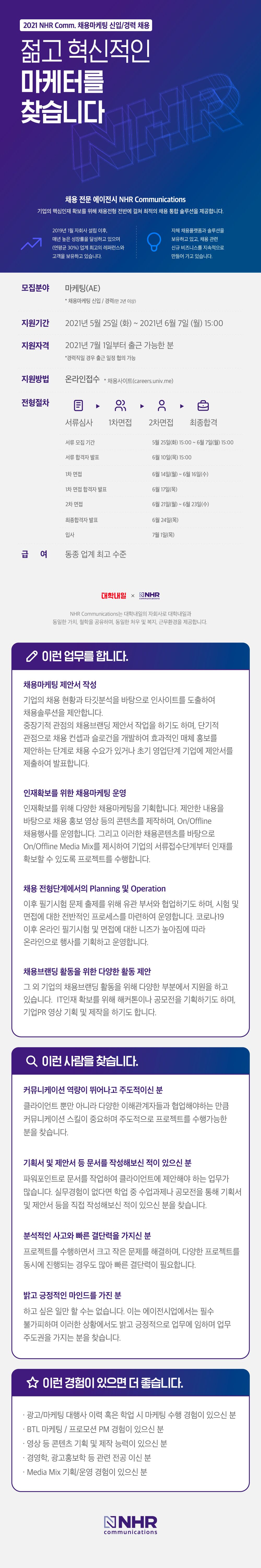 [NHR Comm.] 2021 채용마케팅 신입/경력 채용 (~6/7)