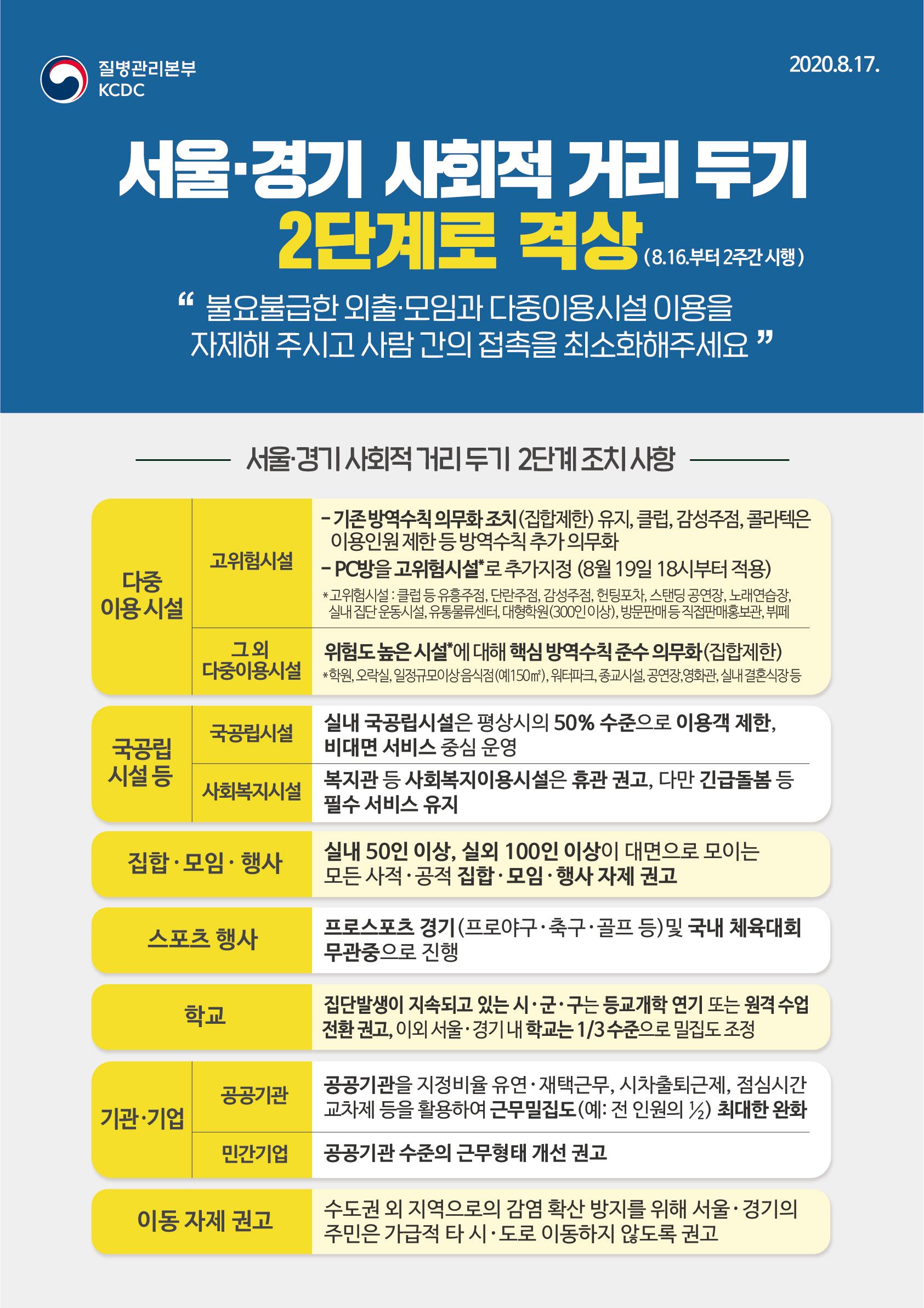 서울·경기 사회적 거리두기 2단계 격상에 따른 안내