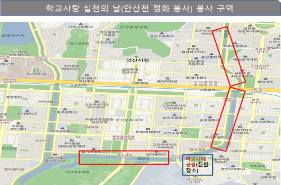 - 장소 : 안산천 일대, 성포초 안산천 인근 3구역은 버스로 이동