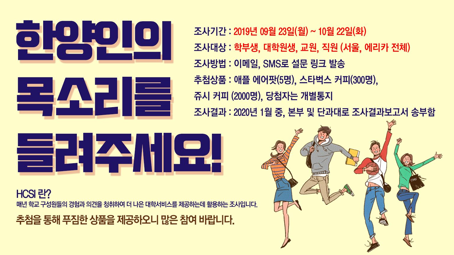 2019년도 한양고객만족도(HCSI)조사 참여 요청