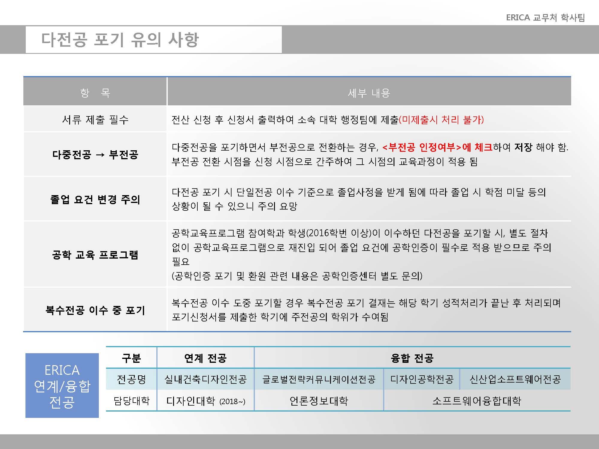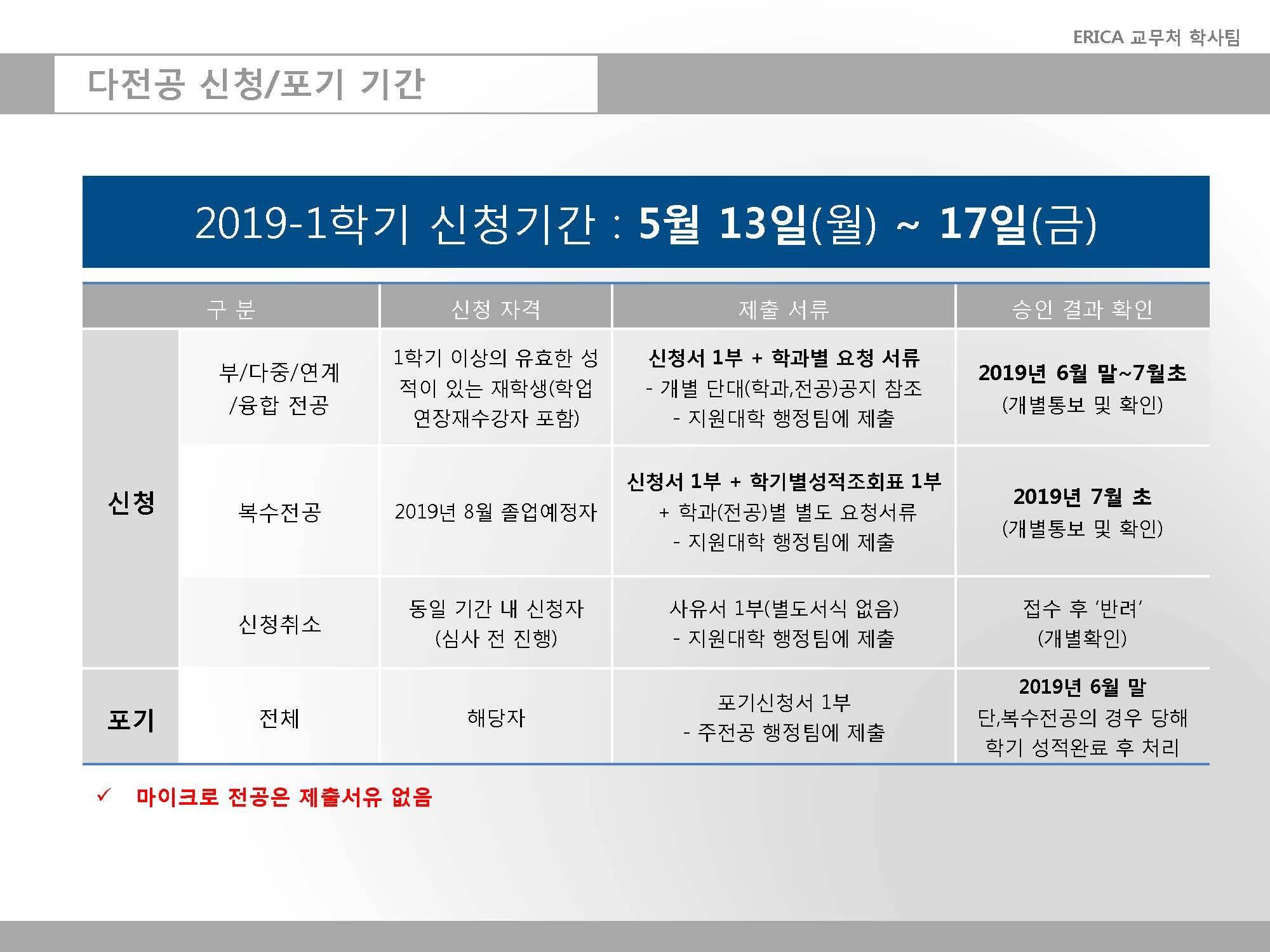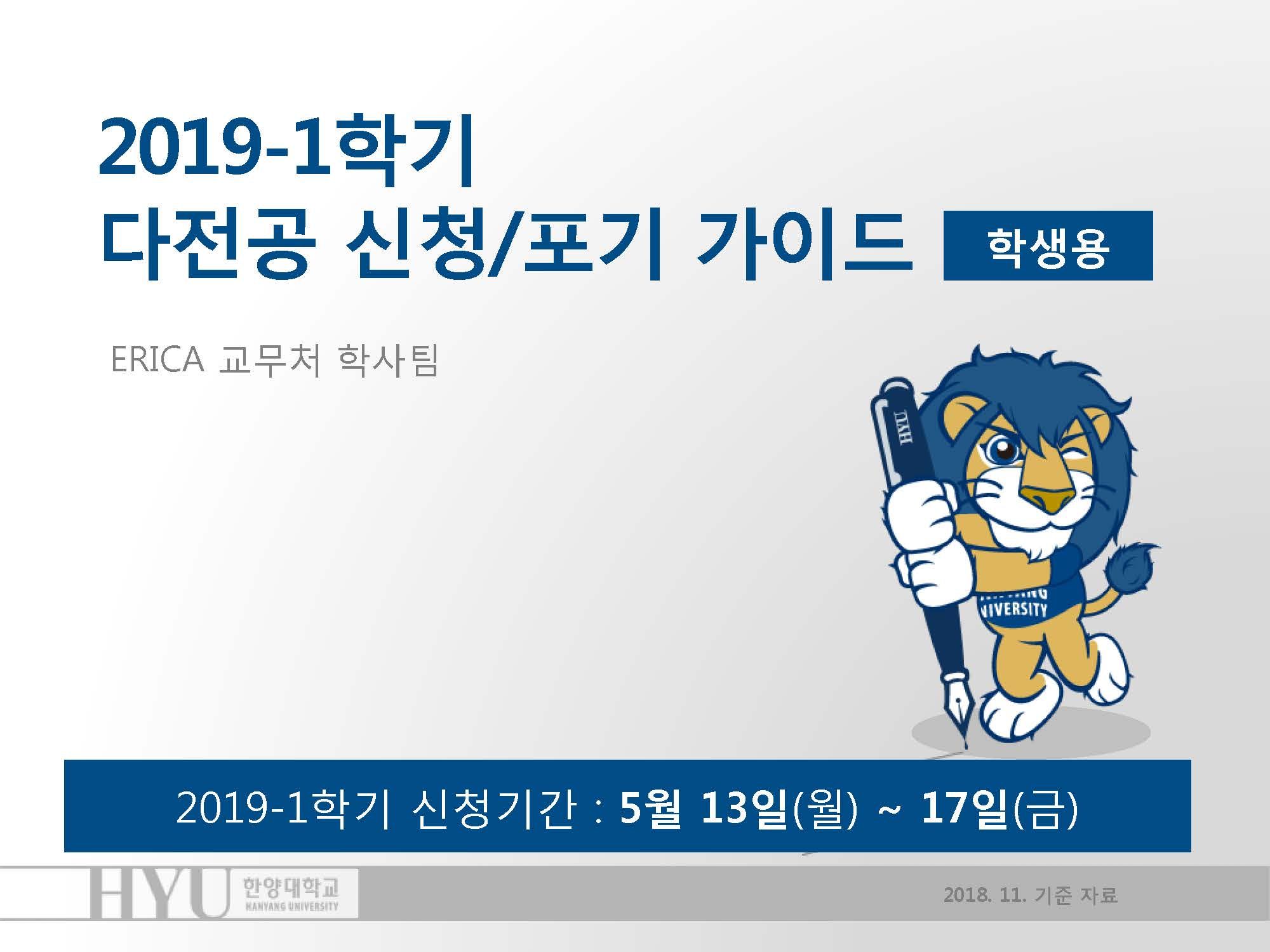 2019학년도 1학기 다전공(부전공, 다중전공, 융합전공, 복수전공) 신청 및 포기 안내