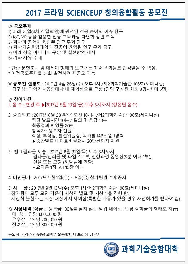 (변경) 제2회 2017 프라임 창의융합활동 공모전